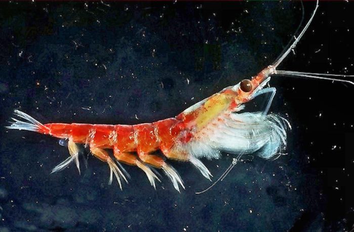 - Антарктический криль (Euphausia superba) – самый многочисленный вид криля, распространен в водах Антарктики, схож с арктическим видом.