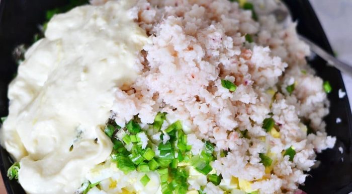 - Смешать все ингредиенты с майонезом.