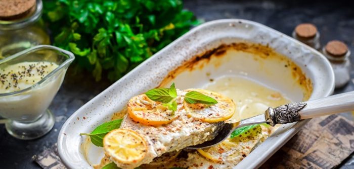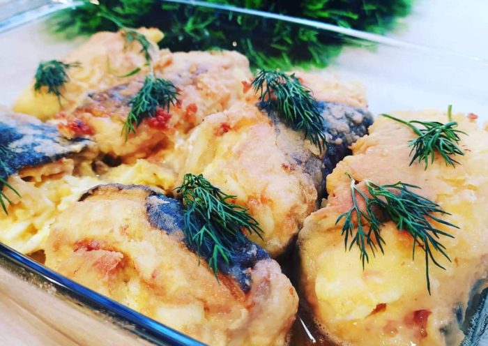- Рыбу предварительно запекаем в духовке до полуготовности.
