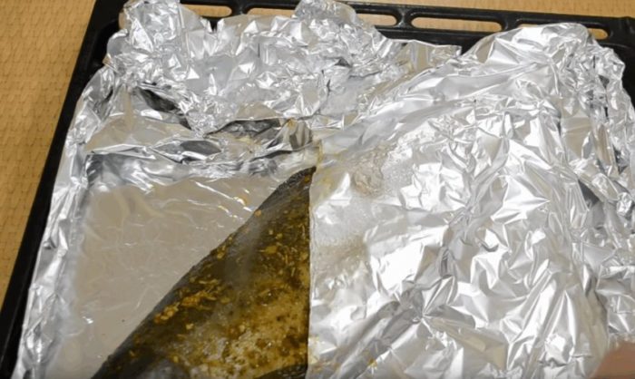 Жар в духовке сухой, а потому нужно предпринять дополнительные меры для предотвращения пересыхания рыбы.