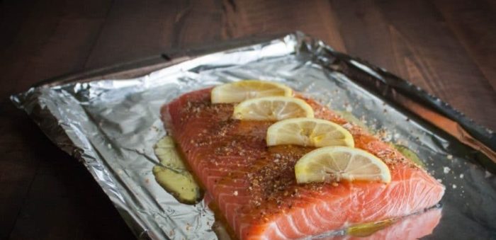 Свернуть края фольги над горбушей, чтобы рыба была полностью закрыта. Запекайте примерно 15-20 минут.