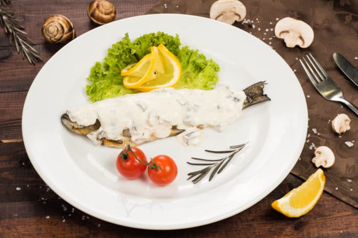 - Перед подачей рекомендуется полить соусом, в котором томилась сама рыбка.