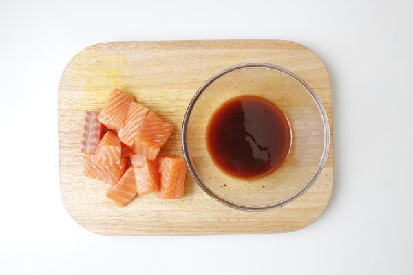 Погрузите кусочки форели в маринад и отставьте в сторону.