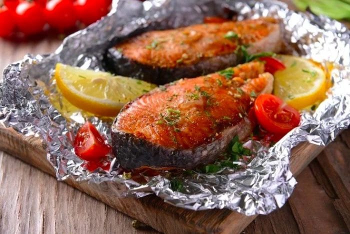 - Подготовить куски фольги и выложить каждую рыбку отдельно.