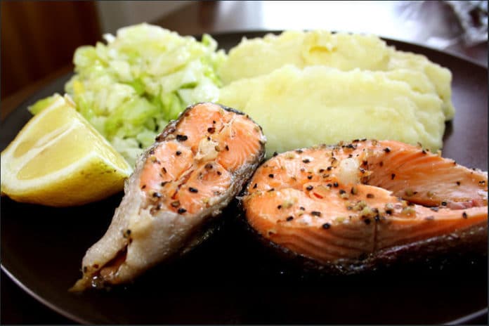 - Картофель сваренный и политый масло или соусом от рыбы.