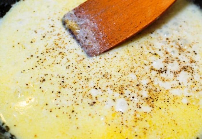 - В сотейнике сливки нагреваются. Важно не допустить их закипания.