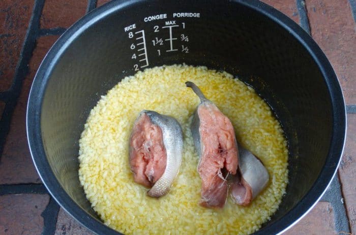 - Горбушу почистить, нарезать на куски.