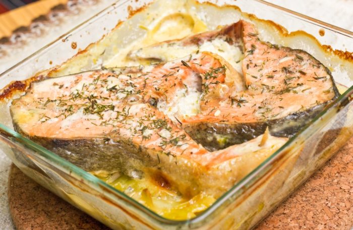 Для приготовления такой красной рыбы используется майонезный маринад и сыр, которые придают ей сочность и неповторимый вкус.