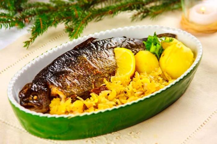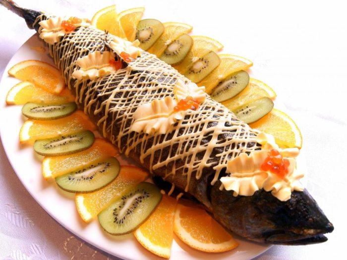 К сведению: фаршированную рыбу принято подавать холодной, так что позаботьтесь о ее приготовлении заранее