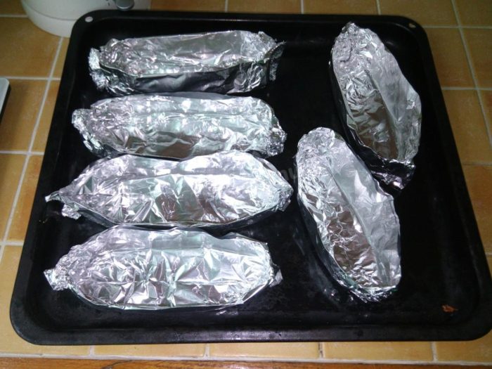 Из фольги свернуть четыре глубокие лодочки.