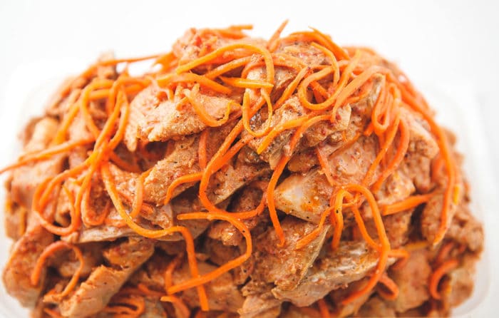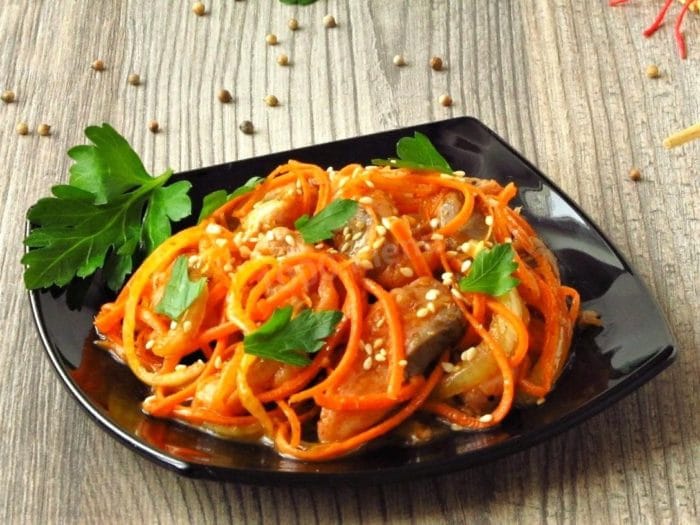 Хе из горбуши рецепт по корейски предполагает наличие в блюде еще и моркови. Это сделает рецепт более полезным.