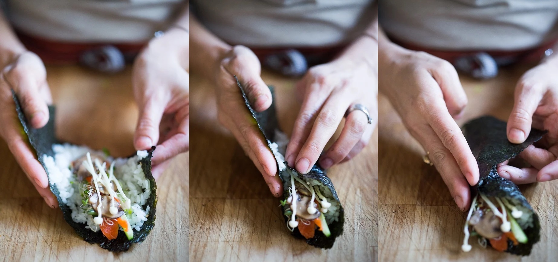 Собирайте хед-роллы непосредственно перед едой, не делайте их заранее. После варки храните рис при комнатной температуре. Всего у вас должно получиться 16 роллов — по 2 на порцию.