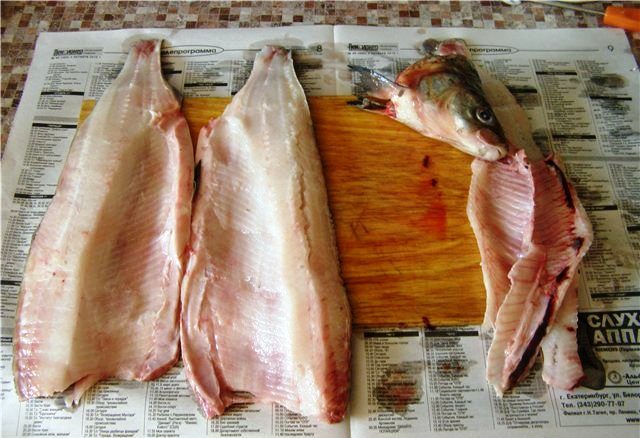 «Из хребта и рёберных костей можно сделать вкусную уху, не спешите их выбрасывать. Положите в морозильную камеру холодильника до следующего раза».