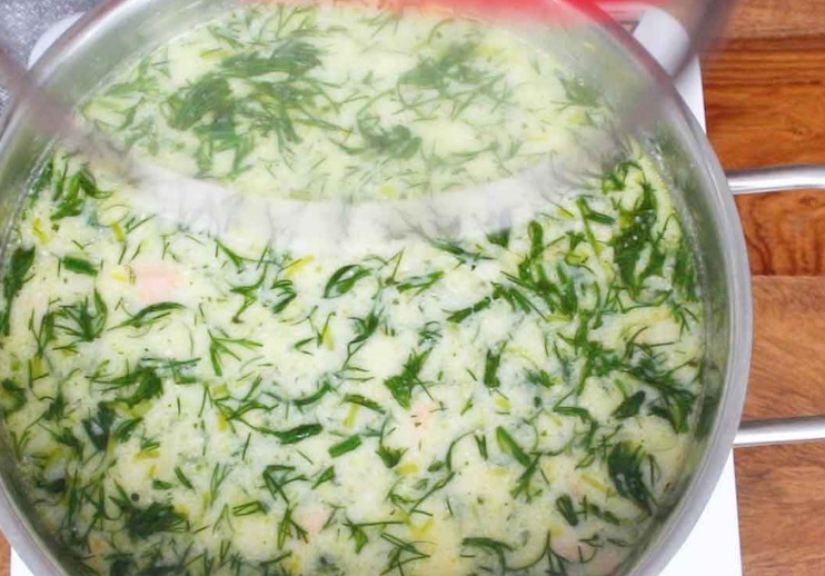 Разлейте рыбный суп по-фински по порционным глубоким тарелкам, украсьте свежей зеленью и подавайте. Приятного аппетита!