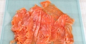 Для данной закуски подойдет не только лосось, а любая рыбка из семейства лососевых: семга, горбуша или кета.