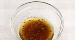 Можно приступать к приготовлению заправки. Для этого в емкости соединить бальзамический уксус, оливковое масло, сок лимона, черный перец и немного соли.