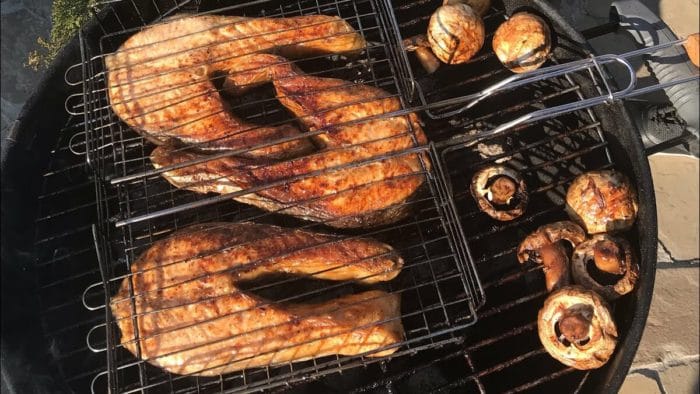 Готовят лосося на решетке, поставленной на мангал с раскаленным древесным углем. Наиболее подходящая для шашлыка древесина – фруктовые деревья: