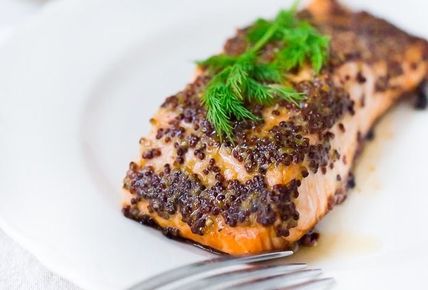 Это несложный рецепт запеченного в духовке лосося с горчицей, оливковым маслом, солью и перцем. Блюдо готовится очень легко и быстро, а вкус у него просто потрясающий, несмотря на всю простоту! Приготовьте его в будние дни на обед или ужин.