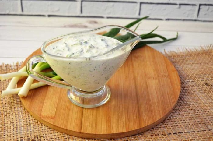 Еще одним традиционным вариантом, часто применяемым в качестве заправки к лососю, служит следующий рецепт, который можно приготовить буквально за 10 минут. Его КБЖУ составляют: