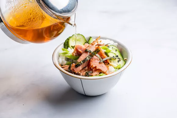 Отядзукэ — это традиционное японское блюдо из пропаренного риса, которое подается в маленькой миске и дополняется жареной семгой и чаем. По сути, это что-то среднее между закуской и простым деревенским супом.