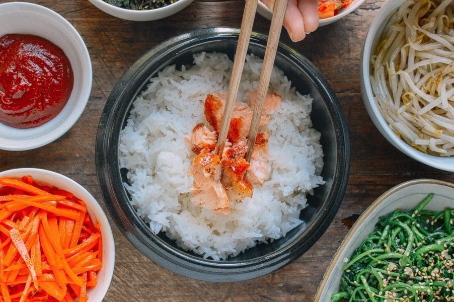 Пибимпаб (пибимпап, бибимбап и т. п.) — невероятно вкусное и полезное блюдо корейской кухни. Оно считается довольно сложным, но на самом деле пибимпаб означает просто «смешанный рис». В этом рецепте мы добавим к нему поджаренный стейк семги с хрустящей корочкой, яйца, овощи и зелень. Менее чем за час вы получите сытный ужин для всей семьи!