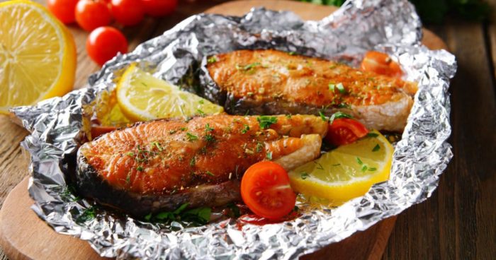 - Тщательно завернутые кусочки горбуши в фольге переложите на решетку примерно на 8 минут. Готовая запеченная рыба должна потомиться примерно пять минут. Лишь после этого можно подавать ее, предварительно сбрызнув немного соком лимона.