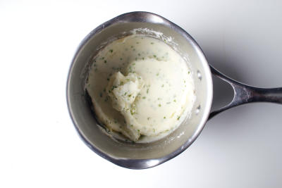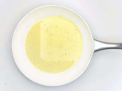 Переложите семгу на тарелку, а сковороду верните на средний огонь (добавьте еще масла, если она слишком сухая). Добавьте муку и помешивайте в течение 1 минуты. Далее влейте овощной бульон с шафраном и 50 мл молока. Готовьте 2-3 минуты, пока соус не загустеет. Потом добавьте рисовое вино и густые сливки, готовьте еще минуту.