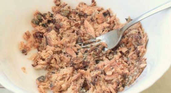 Из кусочков консервированной рыбы выберите хребтовые кости.