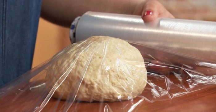 - Если будете готовить пирог с горбушей из дрожжевого замороженного теста, то позаботьтесь о нем заранее: достаньте из морозилки, дайте оттаять. Раскатайте тесто.