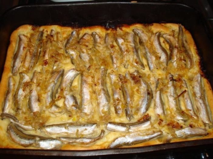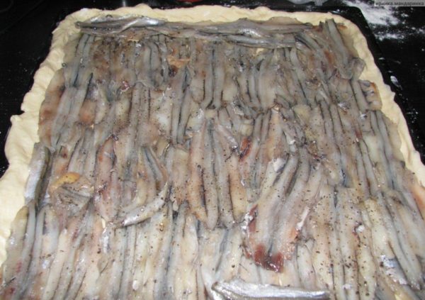Пирог с луком и мойвой