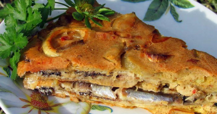 Пирог с мойвой и картофелем