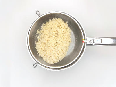 Залейте рис 250 мл холодной воды, доведите до кипения. Затем уменьшите огонь на минимум и варите под крышкой 15-20 минут, затем слейте воду, а рис промойте под проточной водой и оставьте в сите стекать.