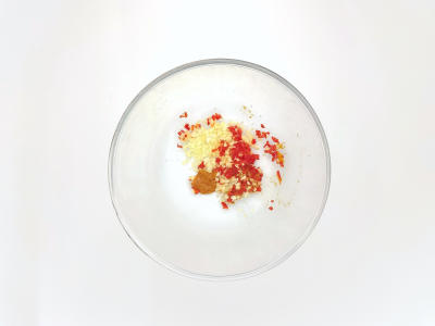 Имбирь и чеснок очистите и мелко нарежьте. Перец чили освободите от семян и мелко порубите. Соедините пасту карри с имбирем, перцем и чесноком.