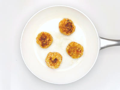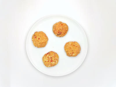 Разделите смесь на 4 части и слепите котлетки. Уберите в холодильник.