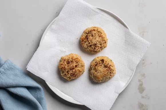 Переверните котлеты и жарьте еще 2 минуты или пока вторая сторона не станет такой же золотисто-коричневой. Выложите котлеты на бумажные полотенца. Подавайте горячими.