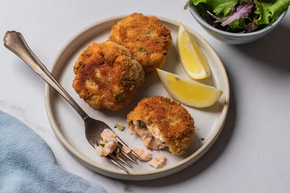 Этот рецепт рыбных котлет предполагает использование не консервированной, а свежей или замороженной семги. Такой вариант сделает их более вкусными и полезными.