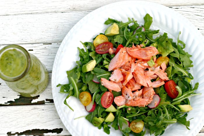 Диетический салат с соленой семгой, руколой и огурцом – отличная вариация завтрака, обеда либо ужина в жаркий летний день.