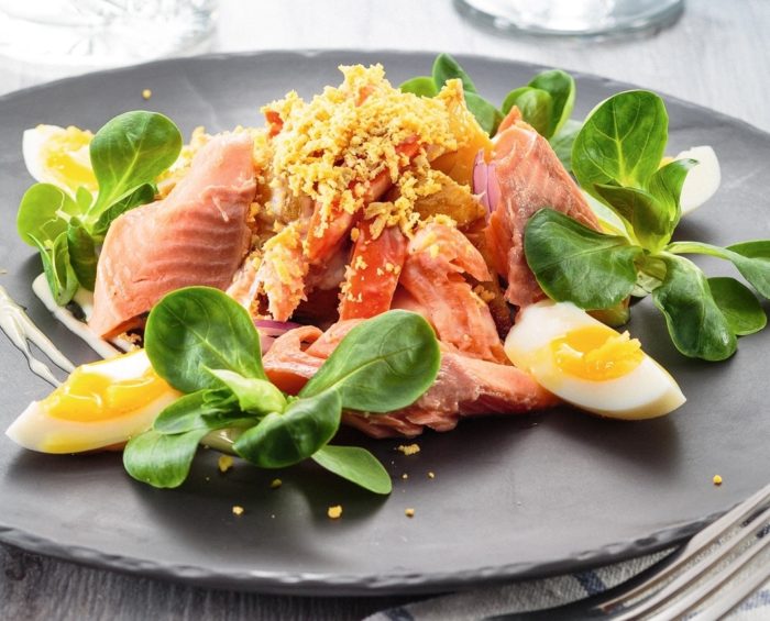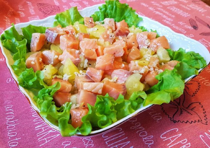 Салат с семгой слабосоленой может понравиться даже любителям классической кухни.