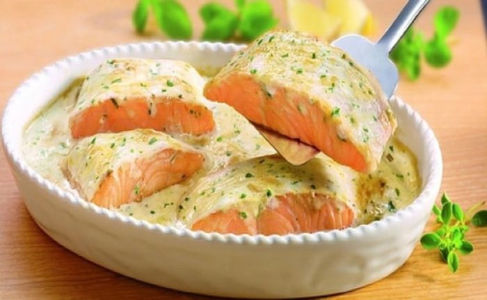 Ещё один удивительный рецепт семги – в сметанном соусе. Для его приготовления не придётся потратить много времени и сил.