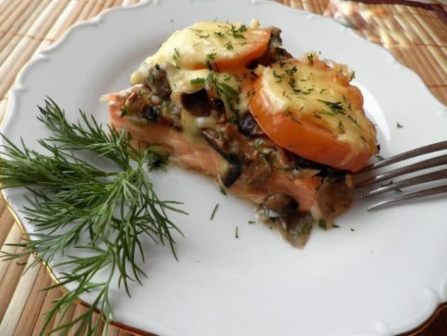 Семга, запечённая в духовке с помидорами – восхитительное блюдо.