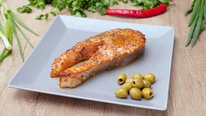 Когда семга промаринуется её нужно выложить на решётку. Это позволит пропечь семгу со всех сторон. Также нужно использовать поддон или противень. Дело в том, что в процессе жарки семга будет истекать рыбным жиром, который может запачкать духовку