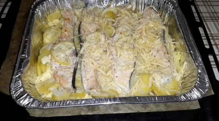 - Вот и всё. Вкусный завтрак из сёмги в духовке готов.