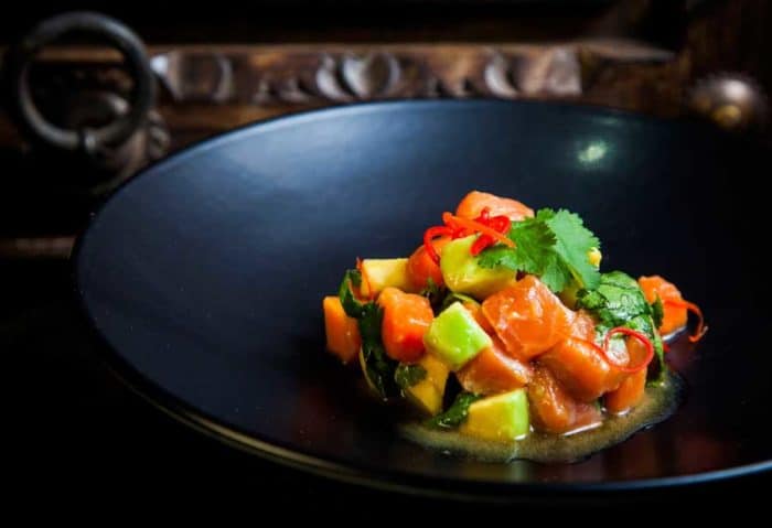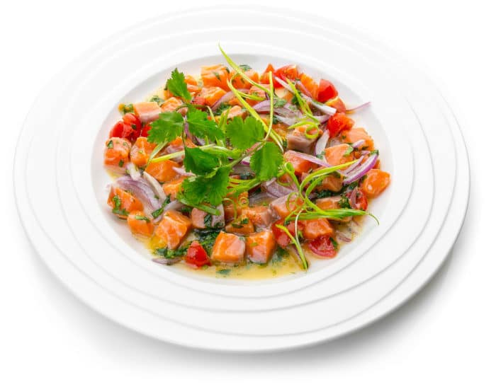 Особенность приготовления севиче из лосося в том, что рыба не подвергается никакой тепловой обработке, поэтому ее качество не должно вызывать даже малейших нареканий. Денатурирует (приготавливает) белок кислота из лимонного сока, в котором маринуют морепродукт.