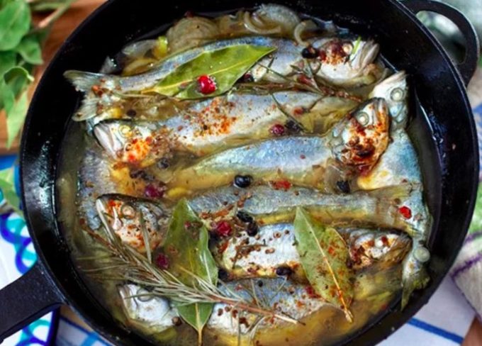 - Отварные рыбешки надо вынуть из воды, сбрызнуть лимонным соком, посыпать базиликом, розмарином или фенхелем.
