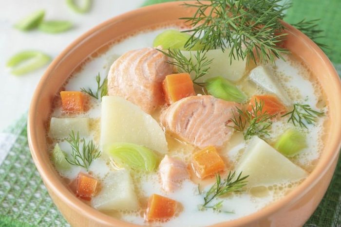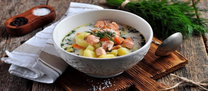 Поделимся традиционным рецептом финского супа из красной рыбы со сливками. Такое лакомство имеет сходство с ухой по-фински, его подают в различных ресторанах в любое время года. Попробуем приготовить данный суп в домашних условиях.