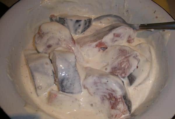 - Рыбу залейте сметаной.