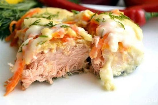 В последние несколько лет особенно популярными становятся блюда, которые напоминают о временах Советского Союза. Как вариант это может быть горбуша в духовке с картошкой, которую можно подать даже на праздничный ужин, красиво оформив зеленью.