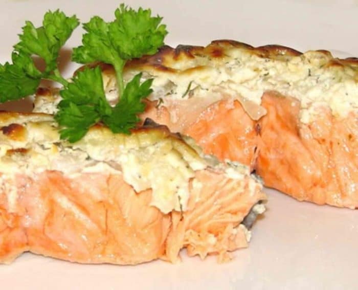 Стейк лосося в духовке – отличный вариант получить сочную рыбу. А сырная шапочка не только придаст дополнительный вкус, но еще и добавить пикантных ноток. В этом случае особо хорошо работает пармезан или даже сыр с плесенью, который может придать необычный колорит. Каждый раз можно менять сорт этого молочного продукта и выбрать в итоге то, что придется по душе.