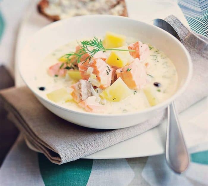Для приготовления финского супа с лососем, не нужно искать экзотических ингредиентов или менее жирную рыбу.