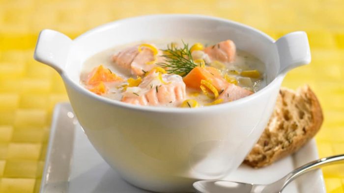 Скандинавский сливочный суп с семгой получается отменным и не жирным, что позволяет готовить его ежедневно, хотя скандинавы предпочитают это блюдо по особым случаям.